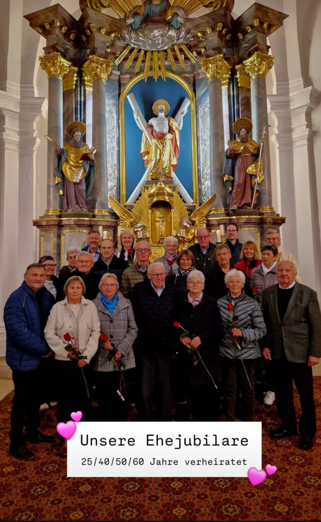 Zehn Jubelpaare kamen der Einladung zum Dankgottesdienst nach. Im Anschluss gabs für die Ehejubilare einen kleinen Imbiss und einen Umtrunk im Pfarrheim.