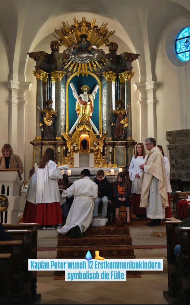 Veröffentlicht am April 3, 2026 von 13633108Fußwaschung am Gründonnerstag Außerdem erhielten unsere Kommunionkinder bei der Gründonnerstagsliturgie ihre Kommunionkreuze.